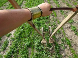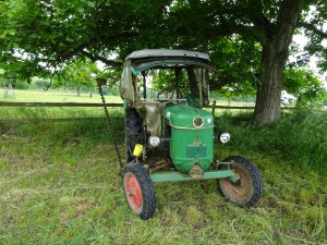# Maschinisierung: Zwei Traktoren (ein Fendt Geräteträger mit Zwischenachsaufhängung, seitliches Mähwerk, Schlegelmulcher, Gänsefußhacke, Pflug, ), noch nicht benutzte Pferdegeräte